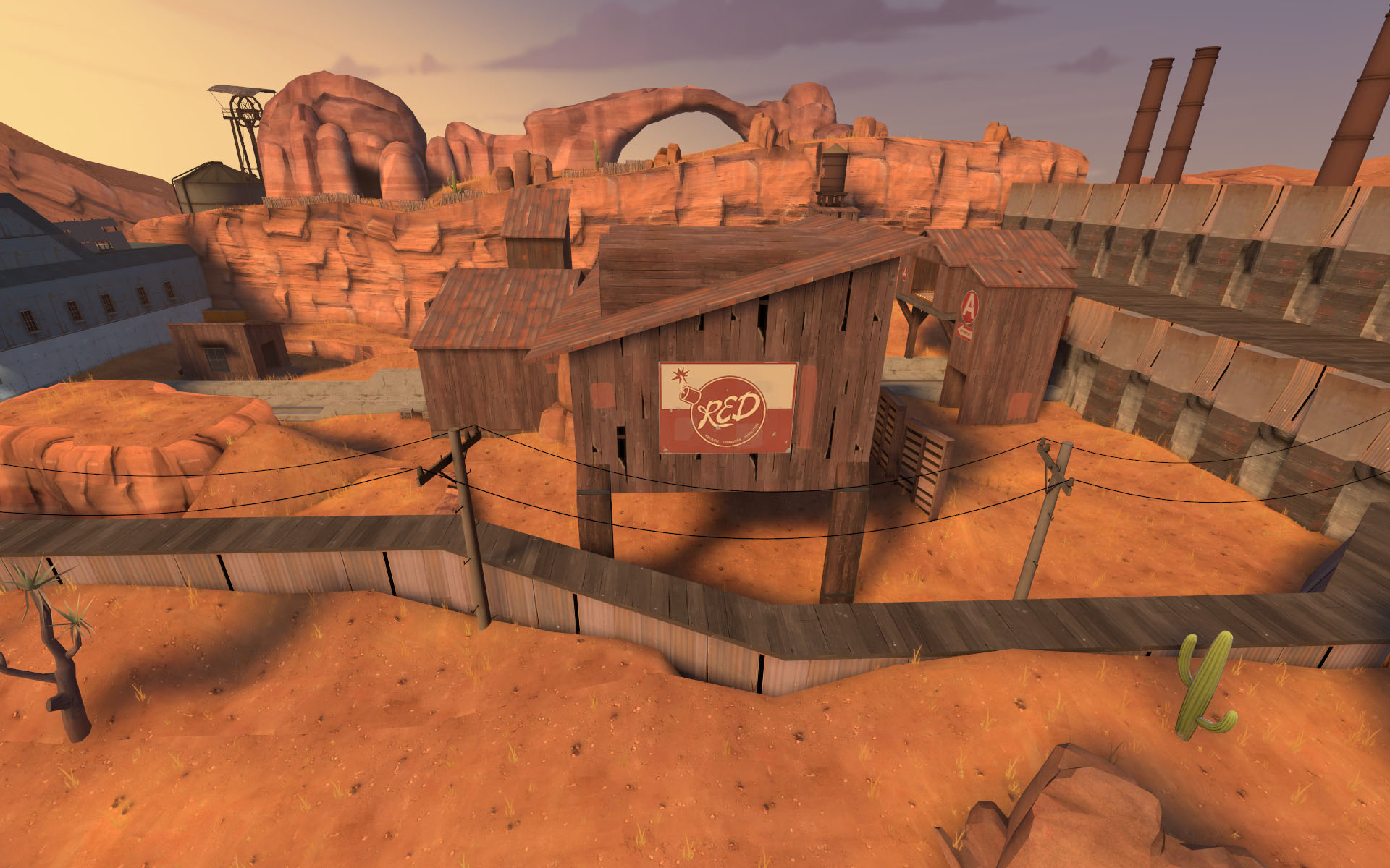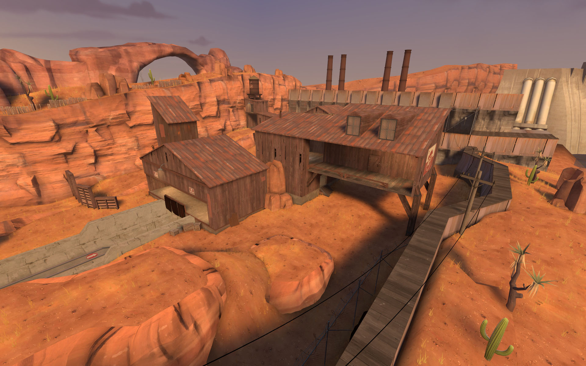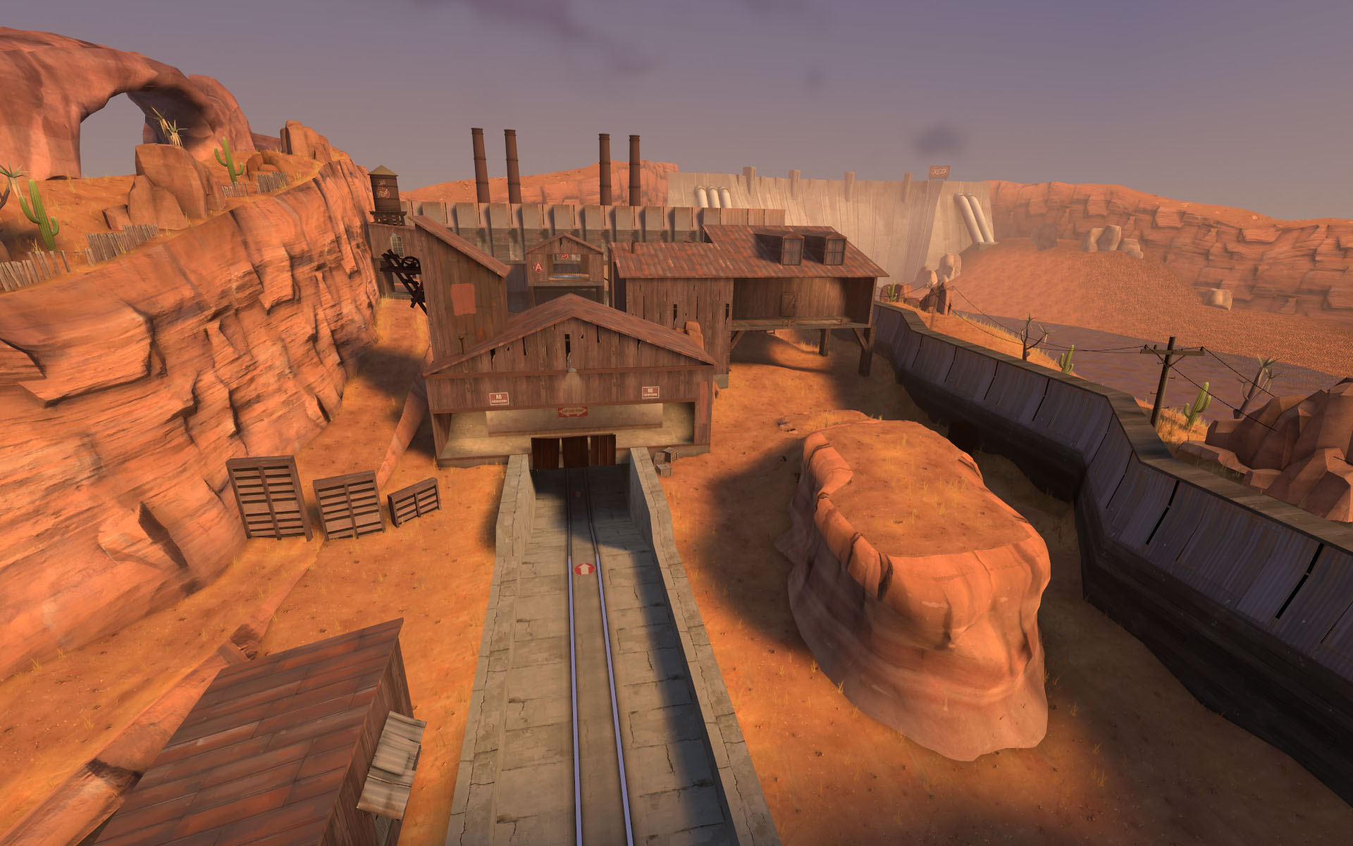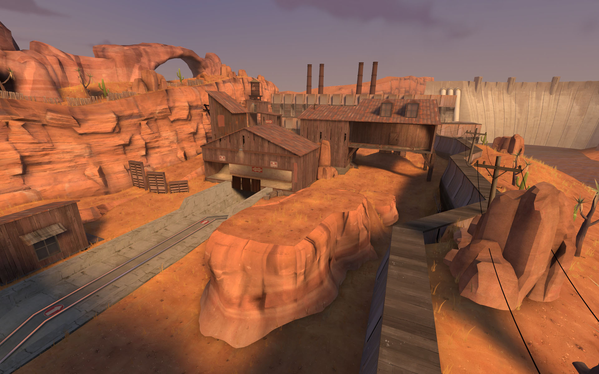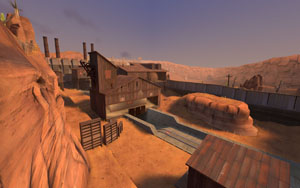 Here are some sample screenshots from my TF2 map. I created this as a project to teach myself how to use Source and the Hammer editor. I found some very distinct differences between Source and Unreal3, some good, others not so good. Learning the displacement system was probably the greatest challenge, initially it seems far inferior to Unreal's terrain system but once you get used to it it is a lot more flexible as it can also be used for vertical surfaces such as cliffs and tunnels. The 3D Skybox was also quite a task to get working!